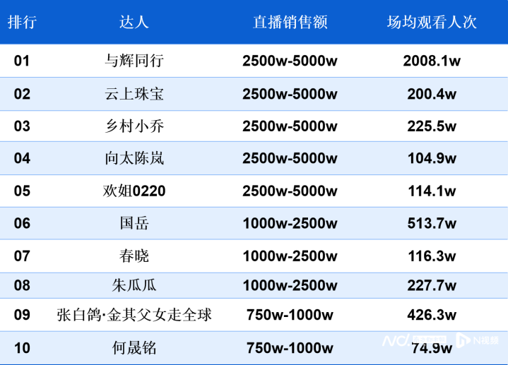 抖音7月8日直播带货日榜:与辉同行单场观看人次突破2000万,前五直播间销售额均超2500万。